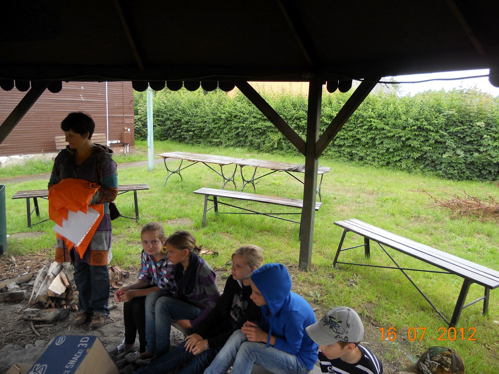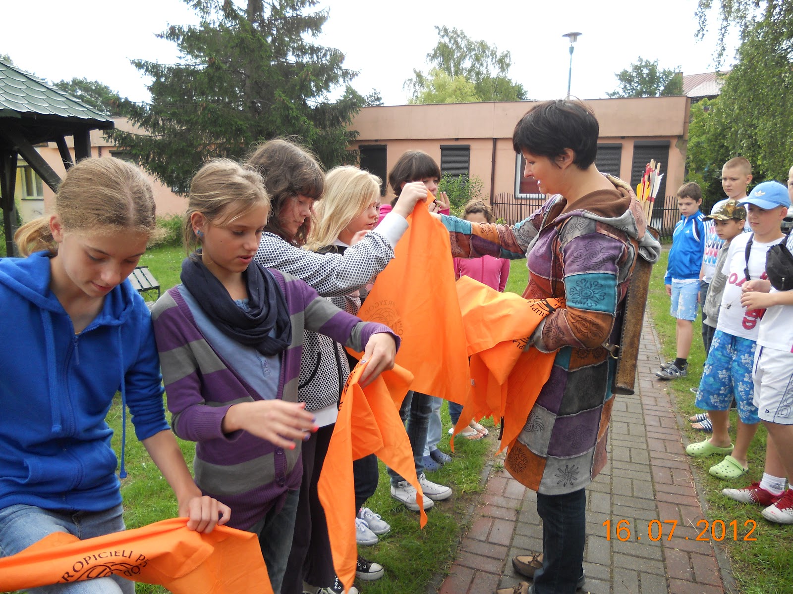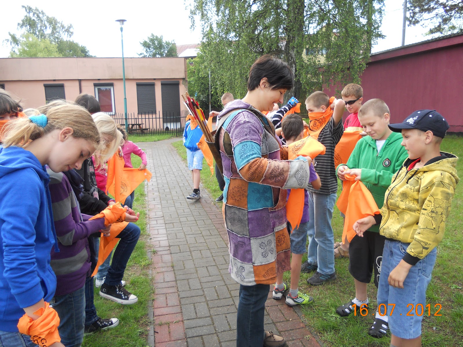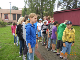 Tworzymy dwie drużyny - Krasnoludy "żeńskie" - Krasnoludy Gwiazdy i Krasnoludy "z brodami" - Dzieci lasu. Namalowaliśmy swoje flagi, ułożyliśmy okrzyki i pieśń.