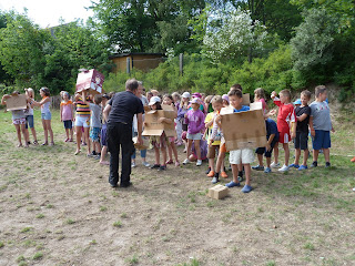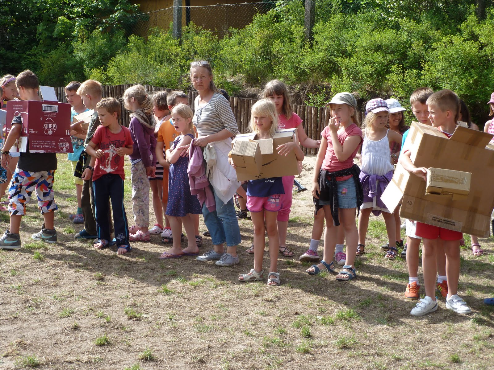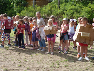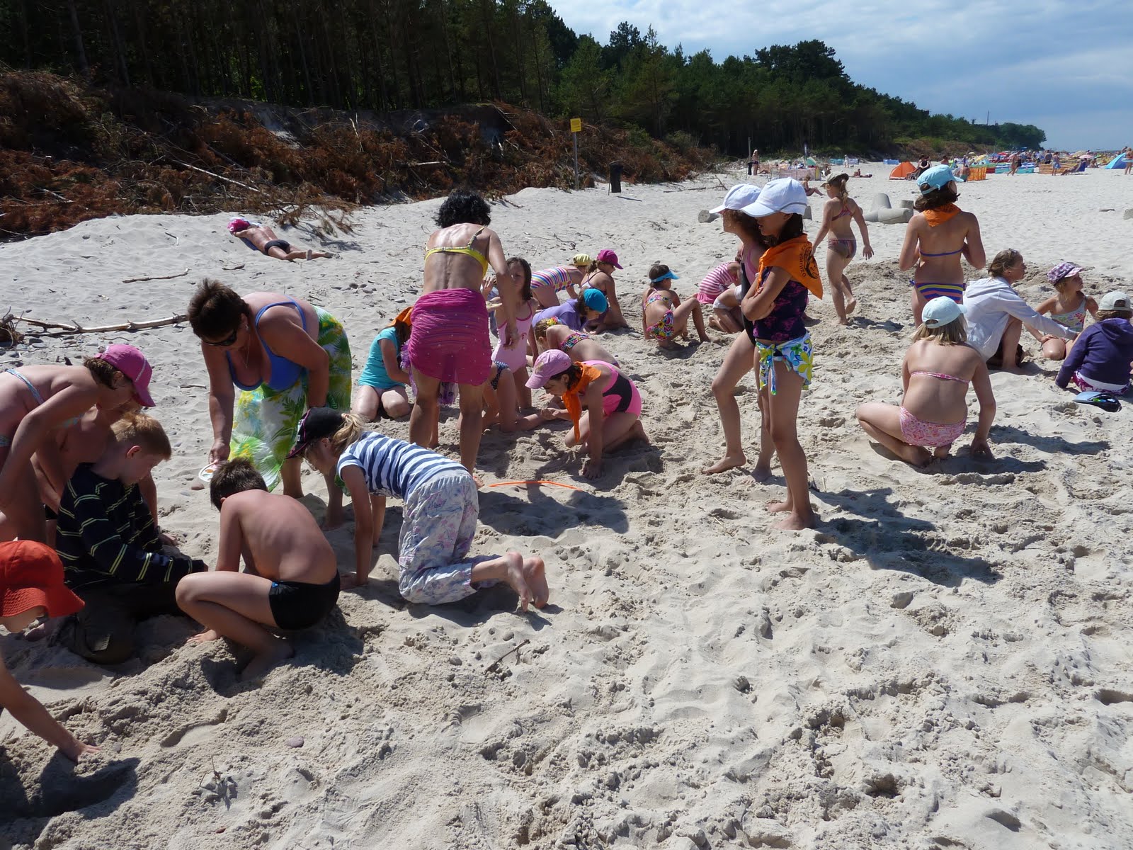 Dziś przed południem, oprócz kąpieli dla śmiałków (nadal jest zimna woda), szukaliśmy skarbów. Najwięcej wykopała drużyna Błękitnych.